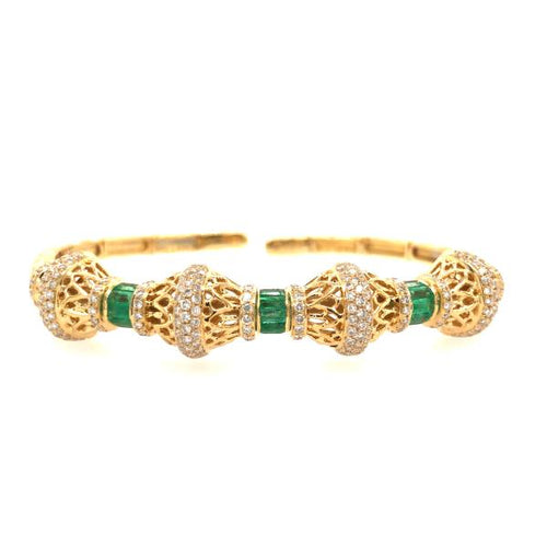 Diamond and emerald barrel bangle bracelet (SKU B053)